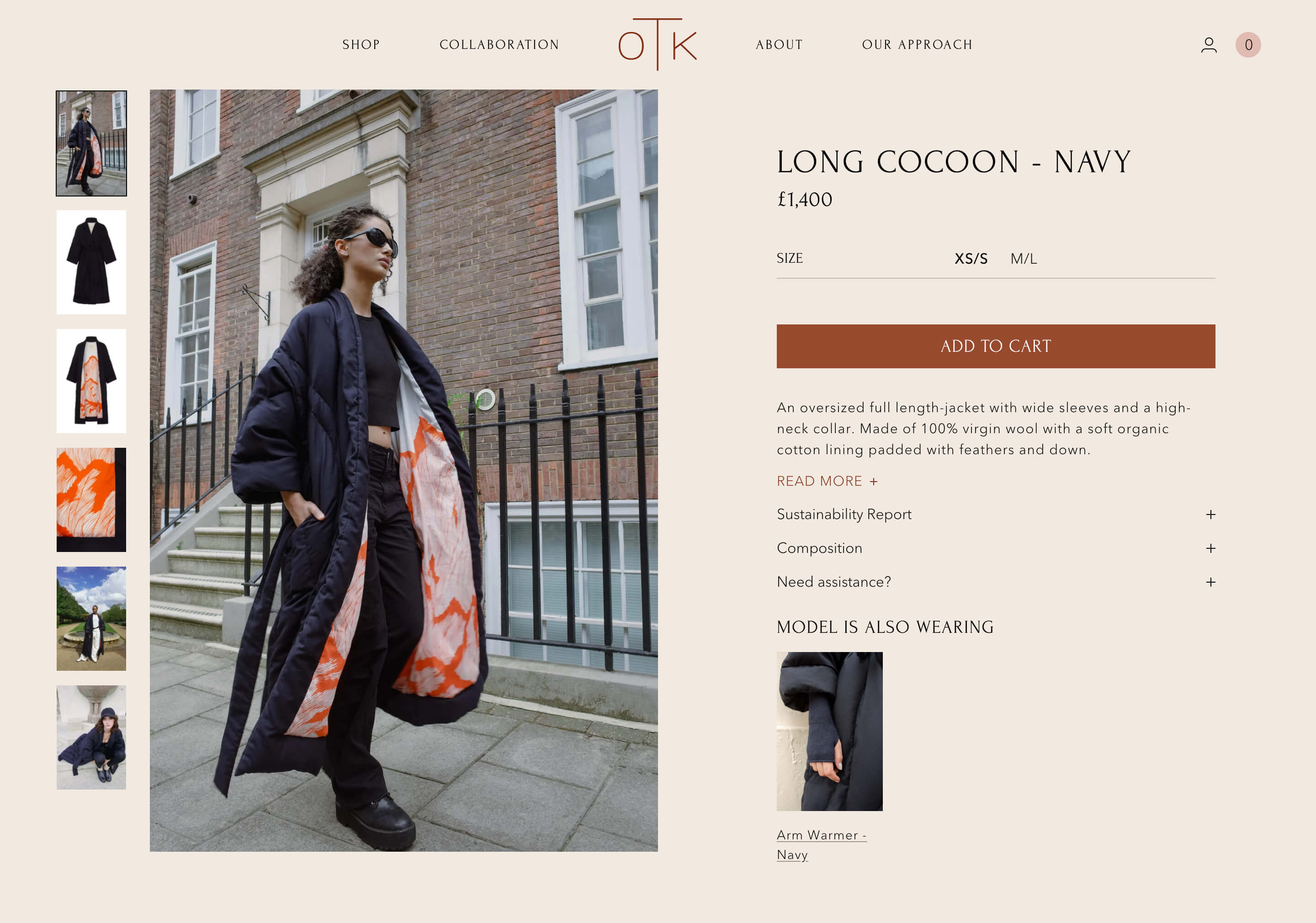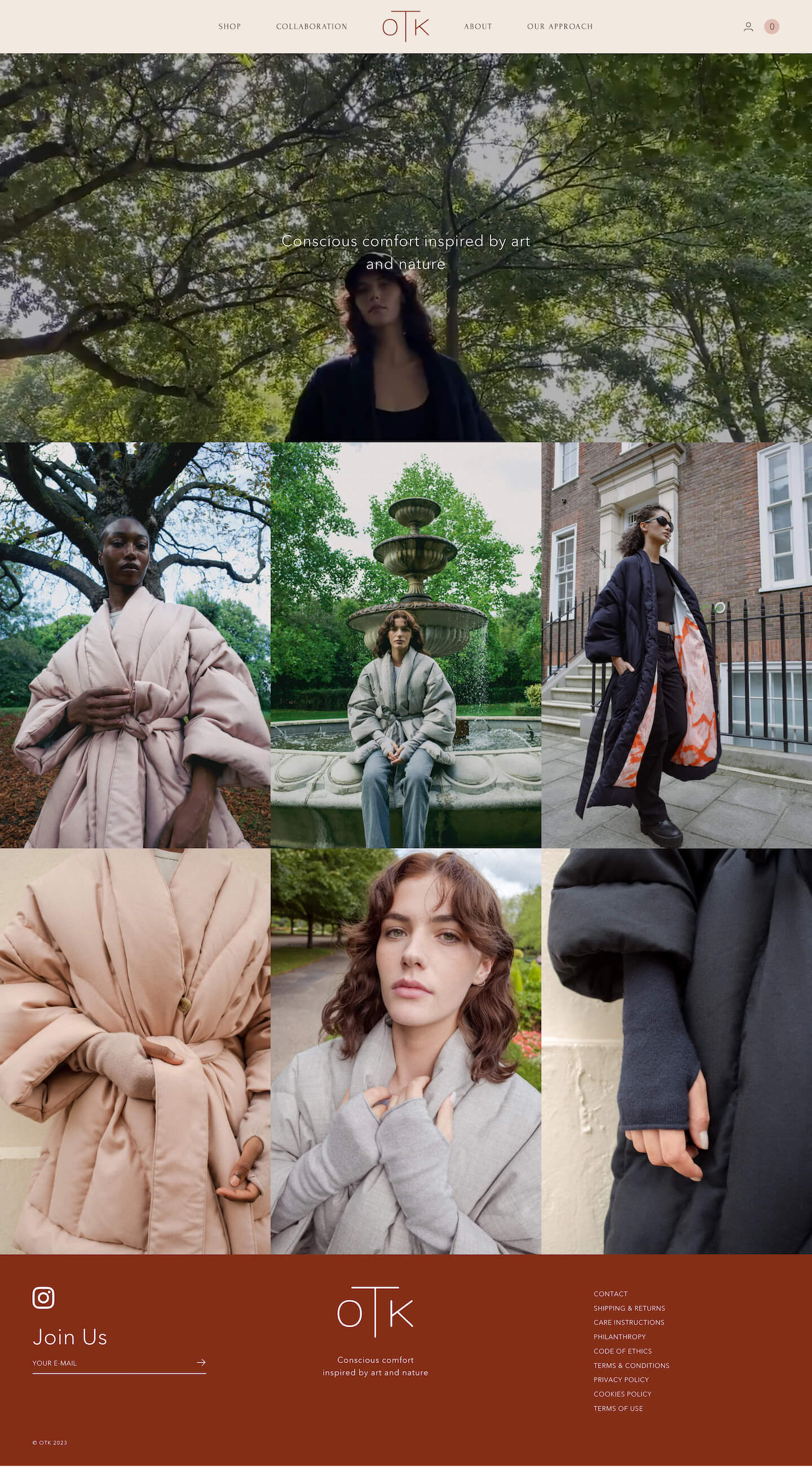 OTK specialise in sustainable quilted jackets made in collaboration with artists. OTK is an expression of a comfortable and conscious way to live.